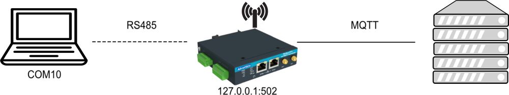 Dieser Modbus-RTU auf MQTT Konverter mit 4G-LTE WAN Anbindung ist eine spezielle Lösung mit einem 4G Router als Basis, der mit zwei User Modulen (MODBUS-RTUMAP und MB2MQTT) von Advantech ausgestattet wird, die es gemeinsam ermöglichen die Modbus-RTU Daten in MQTT zu verwandeln. Der Router unterstützt nicht nur LTE Cat.4, sondern verfügt auch über 2x LAN Ports, eine serielle RS-232 Schnittstelle, einen RS485 Port, einen digitalen Eingang, einen digitalen Ausgang und zwei SIM Slots. Wenn kein externer oder zentraler MQTT Broker vorhanden ist, kann er auch direkt auf dem Router installiert werden.