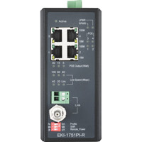 Der EKI-1751PI-R ist ein industrieller Ethernet über VDSL2 Extender mit 4x 10/100 Mbps RJ45 PoE Anschlüssen, der vorhandene Kupferkabel Infrastrukturen (Twisted-Pair oder Koaxial) für die Erweiterung von Ethernet, auf bis zu 2 km via VDSL2, nutzt. Er kann die verbundenen Geräte mit bis zu 30 Watt pro Ethernet Anschluss versorgen und hat eine Betriebstemperatur von -40 °C bis 75 °C. Dieser PoE Ethernet Extender eignet sich für die Verwendung mit dem EKI-1751PI-M und stimmt mit den IEEE 802.3af/at Standards überein.