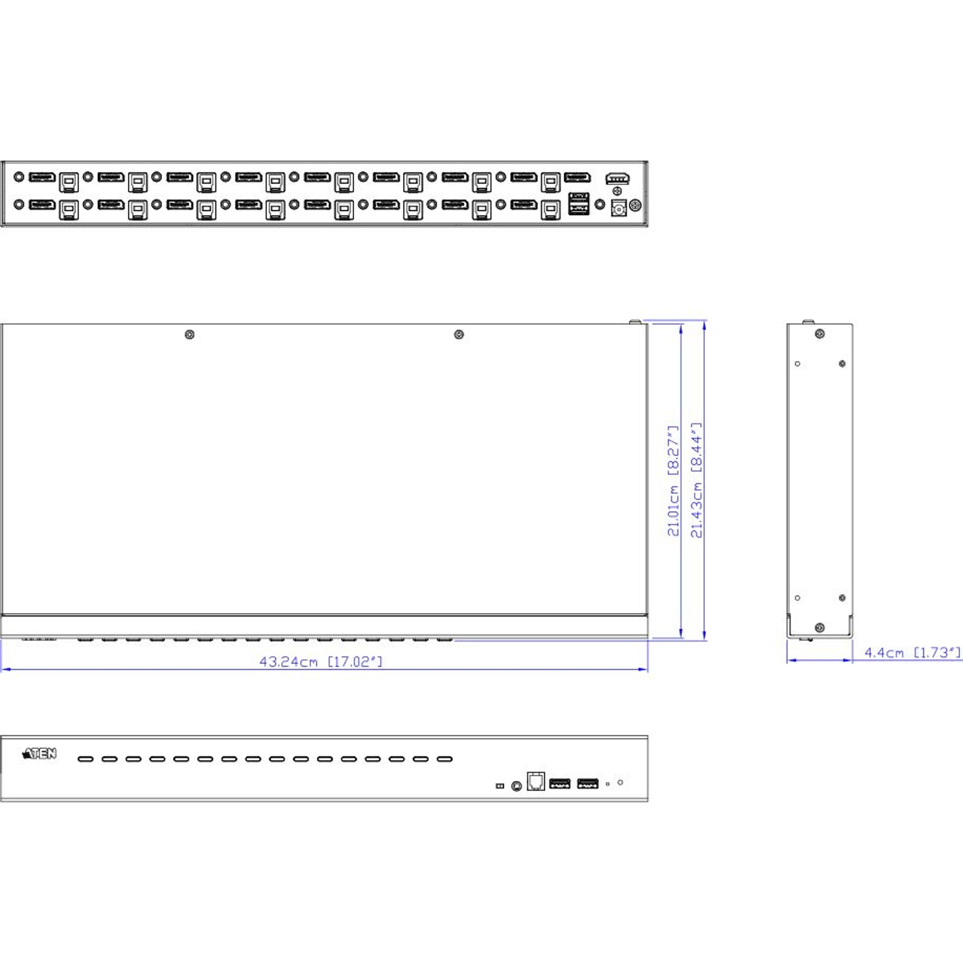 CS19216 – 4K60 UHD DisplayPort KVM Switch von Aten mit 16x DisplayPort 1.2 Anschlüssen und einem integrierten 2-Port USB 3.1 Gen 1 Hub