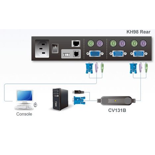 Der CV131B ist ein, speziell für Sun-Computersysteme entwickelter, Signalkonverter. Er ermöglicht es Sun-Rechner mit den VGA- und PS/2- Anschlüssen eines KVM-Switches zu verbinden und somit den Rechner über eine entfernte Konsole zu steuern. Dadurch kann die Verwaltung und Steuerung des Rechenzentrums zentralisiert werden. Somit können Arbeitsaufwand und Kosten minimiert werden.