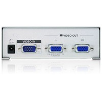 Der VS92A von Aten ist ein Grafik Splitter, mit dem Sie ein VGA Eingangssignal auf zwei verschiedenen Anzeigegeräten wiedergeben können. Zusätzlich werden die Grafiksignale verstärkt und können somit über Distanzen bis zu 65m übertragen werden. Dabei unterstützt der VS92A Grafikauflösungen bis zu 1920 x 1440 @60Hz und eine Bandbreite von 350 MHz.