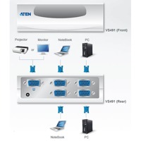 Der VS491 von Aten ist ein Grafik Switch mit dem Sie die VGA-Signale von bis zu 4 individuellen Computern auf einem einzelnen Monitor oder Projektor wiedergeben können. Dabei unterstützt der VS491 Grafikauflösungen bis zu 1920 x 1440 und ist kompatibel zu DDC-, DDC2 und DDC2B. Dank modernster Technologie ist keine spezielle Softwareinstallation erforderlich und Sie können einfach die gewünschten Geräte an die entsprechenden Ports anschließen und loslegen.