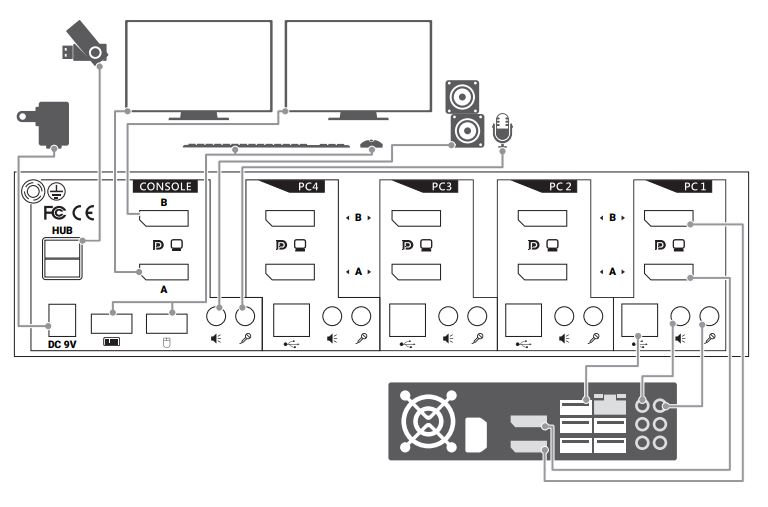 Eine Haupteigenschaft von DisplayPort KVM Switches ist Flexibilität. Dieser Switch ermöglicht es die Tastatur, die Maus und den Display eines Computers zu benutzen, um auf einen anderen Computer zuzugreifen. Alle verbundenen Geräte können auf einem einzigen Computer aufgeschalten werden.