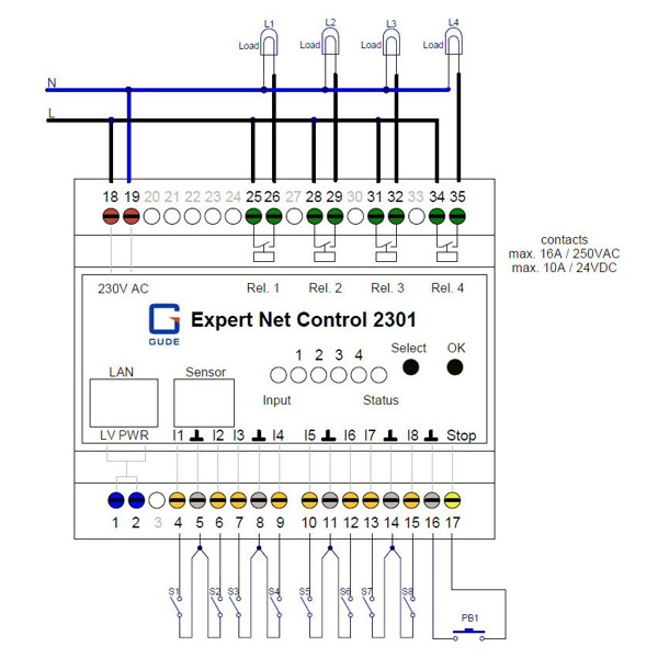 Expert Net Control 2301 - Fernwirksystem für die Hutschiene mit 4 Relaisausgängen und 8 passiven Signaleingängen für TCP/IP-Netzwerke