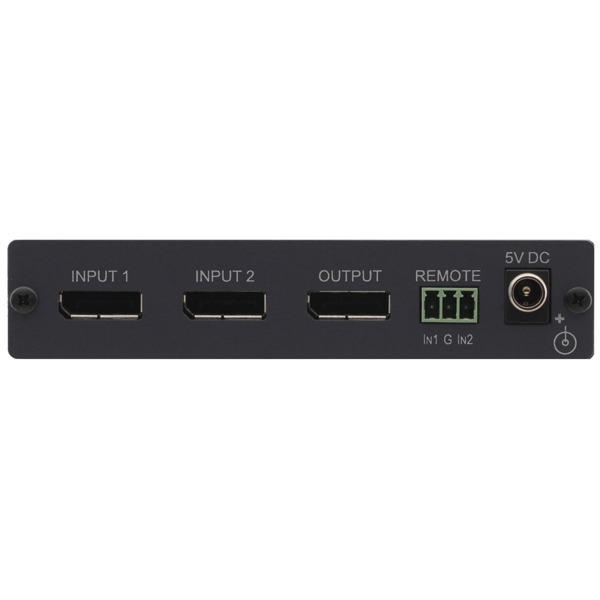 VS−21DP−IR ist ein Hochleistungs−Umschalter für DisplayPort−Signale. Das Gerät schaltet eines von zwei Eingangssignalen auf den Ausgang.