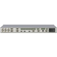- Audio-Eingänge - 6x symmetrisches oder S/PDIF-Audio (wählbar) mit Schraubklemmen für die zwei Universal-Video und vier Computergrafik-Eingänge, Pegelregler für jeden Eingang