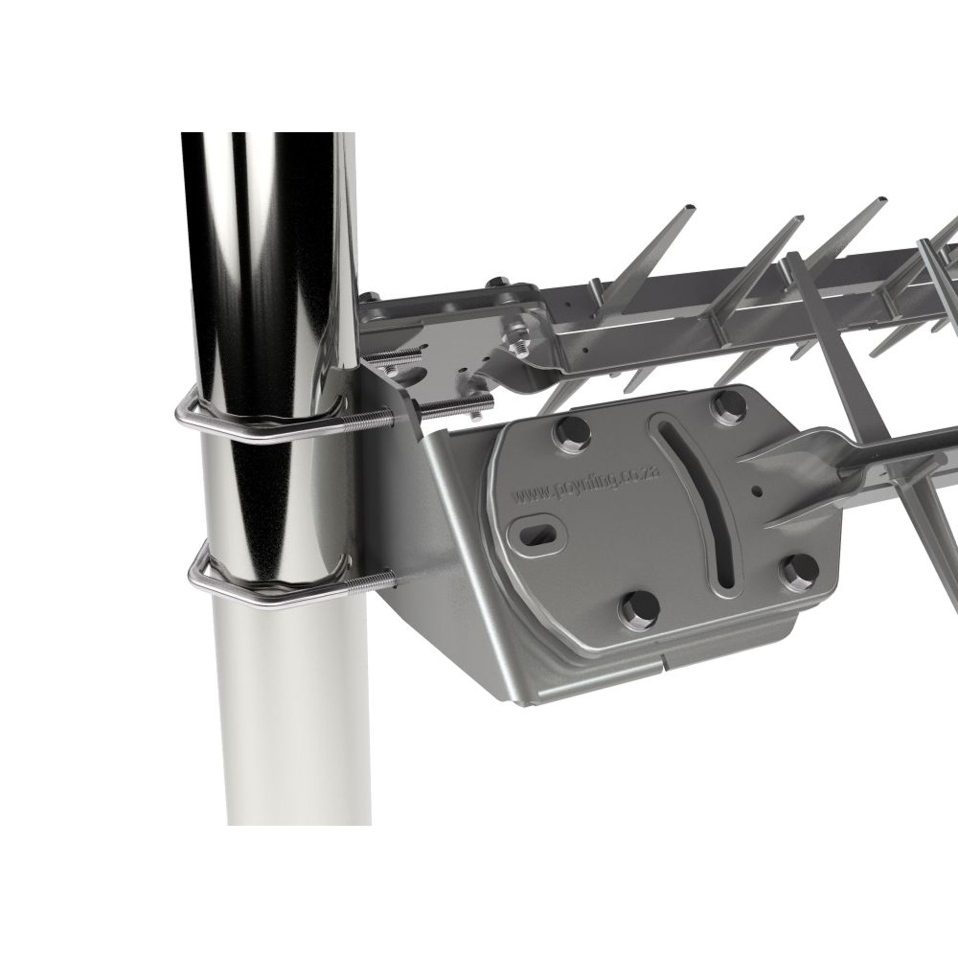 BRKT-33 ± 45° ist eine ausgerichtete Antennenhalterung von Poynting, die für die LPDA-92 und OMNI-69 Antennen entwickelt wurde und mit 8x M6 Muttern, 8x M6 Schrauben und 16x M6 Unterlegscheiben aus rostfreiem Stahl, für die Montage, geliefert wird.