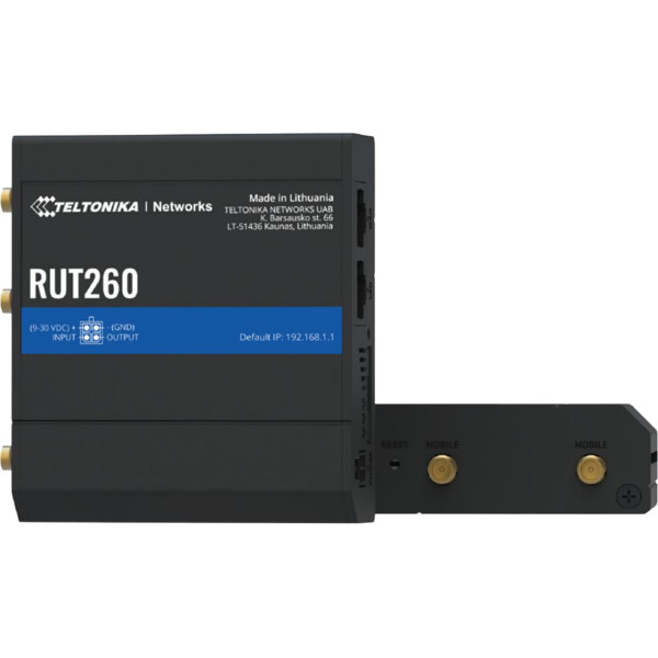 Der RUT260 ist ein kompakter LTE CAT 6 Industrie Router mit einem robusten IP30 Aluminiumgehäuse, der über zwei Fast Ethernet RJ45 Anschlüsse (1x WAN und 1x LAN) verfügt und WAN Failover bietet, um, wenn nötig, automatisch zu einer Backup Verbindung wechseln zu können. LTE Kategorie 6 (CAT 6) unterstützt Übertragungsgeschwindigkeiten bis 300 Mbps mit Carrier Aggregation über 4G Netze und bis zu 42 Mbps bei 3G. Der RUT260 hat auch einen Wireless Modus als IEEE 802.11b/g/n Wi-Fi Access Point (AP) oder Station (STA) und ist mit drei Antennenanschlüssen (2x SMA für LTE und 1x RP-SMA für Wi-Fi) ausgestattet. Er ist auch mit verschiedenen Industrieprotokollen, wie Modbus, SNMP, MQTT oder SSH, kompatibel und verwendet das OpenWrt basierte RutOS Betriebssystem. Dieser LTE CAT 6 Industrie Router verfügt zusätzlich über zahlreiche Netzwerkfeatures (z.B. DHCP, Load Balancing, SSHFS, Firewall, usw.) und ermöglicht es die Daten über VPN Tunnel zu übertragen.