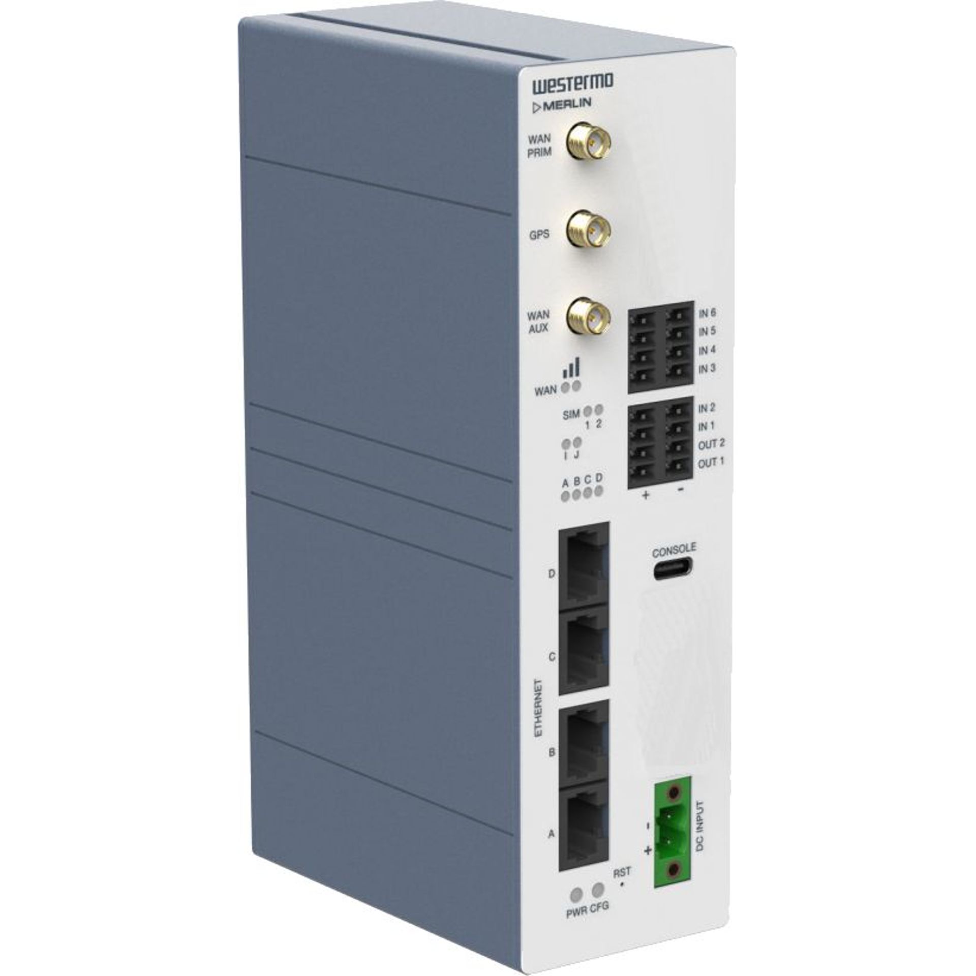 Merlin-4605-T4-DI6-DO2-LV – IEC 61850-3 4G LTE Mobilfunkrouter von Westermo mit 4x 100 Mbps RJ45 Anschlüssen, 6x digitalen Eingängen und 2x digitalen Ausgängen