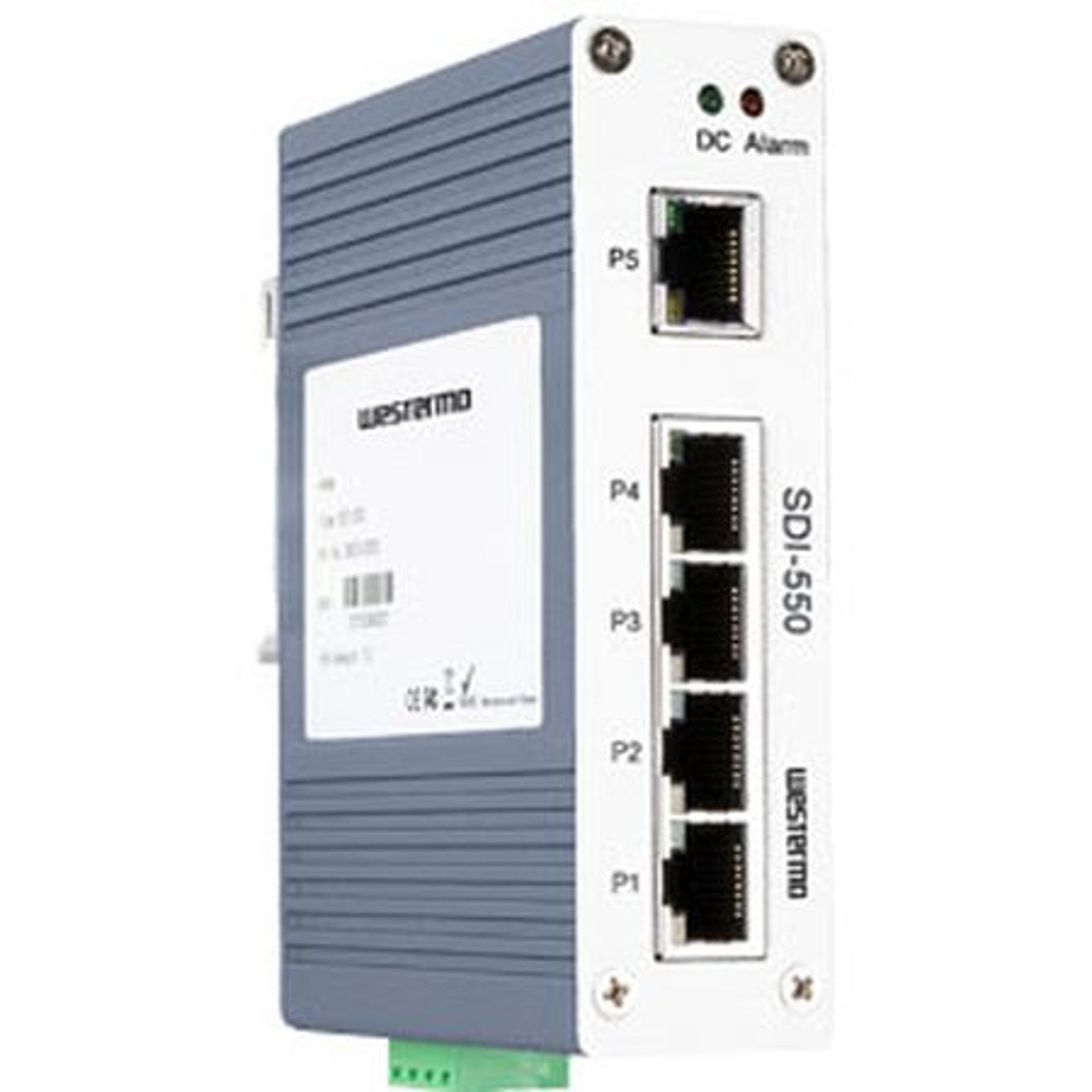 SDI-550 – Unmanaged 5-Port Fast Ethernet Switch von Westermo mit einem kompakten IP31 Aluminiumgehäuse und 3.2 Gbit/s Switch Fabric