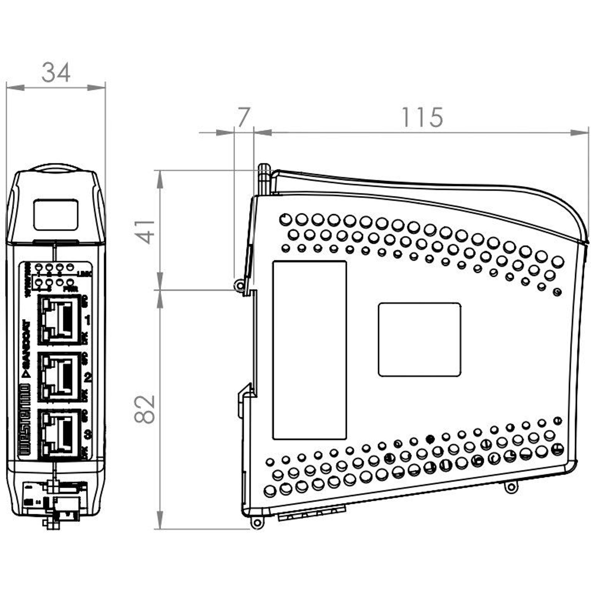Zeichnung des SandCat-3505-F1G-T4G-LV Unmanaged 5-Port Industrie Switch von Westermo