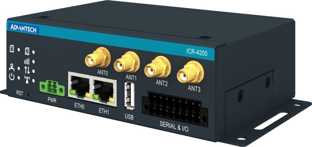 ICR-4261 High-Speed 5G Industrie Router von AdvantechMit Vorteilen wie Gigabit-Ethernet-Geschwindigkeit, niedriger Latenz und hoher Netzwerkverfügbarkeit ermöglichen es die ICR-41/4200 Router, Prozesse zu optimieren, Innovationen voranzutreiben und betriebliche Spitzenleistungen zu erzielen. Die Router-Serie kombiniert starke Leistung, robuste Sicherheit und einfache Verwaltung und ist damit die perfekte Lösung für anspruchsvolle industrielle Anwendungen, die es Unternehmen ermöglichen, im Zeitalter der 5G-Konnektivität erfolgreich zu sein.
