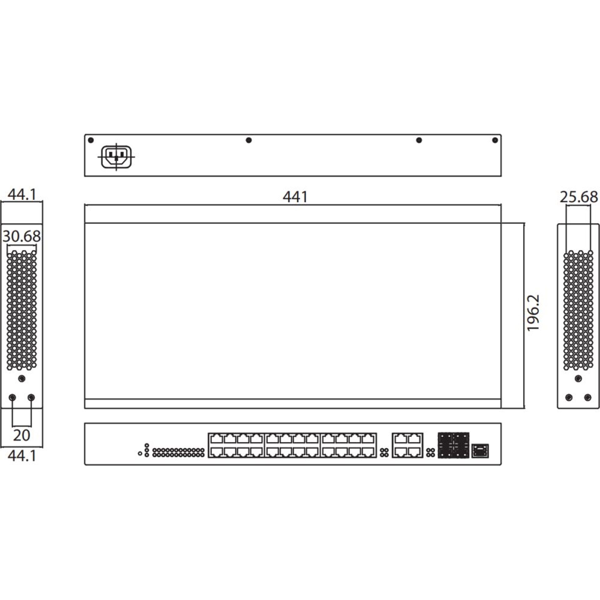 - Verfügt über 24x Gigabit Ethernet RJ45 Anschlüsse