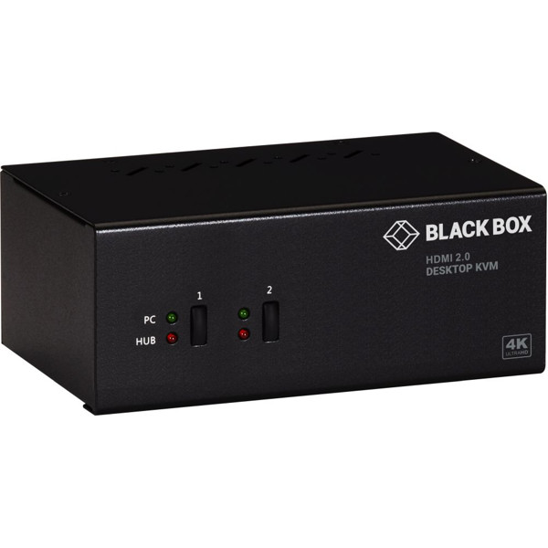 KV6222H – 2-Port Dual Display 4K HDMI 2.0 KVM Switch von Black Box mit einem integrierten 2-Port USB 3.0 Hub für zusätzliche USB Peripheriegeräte