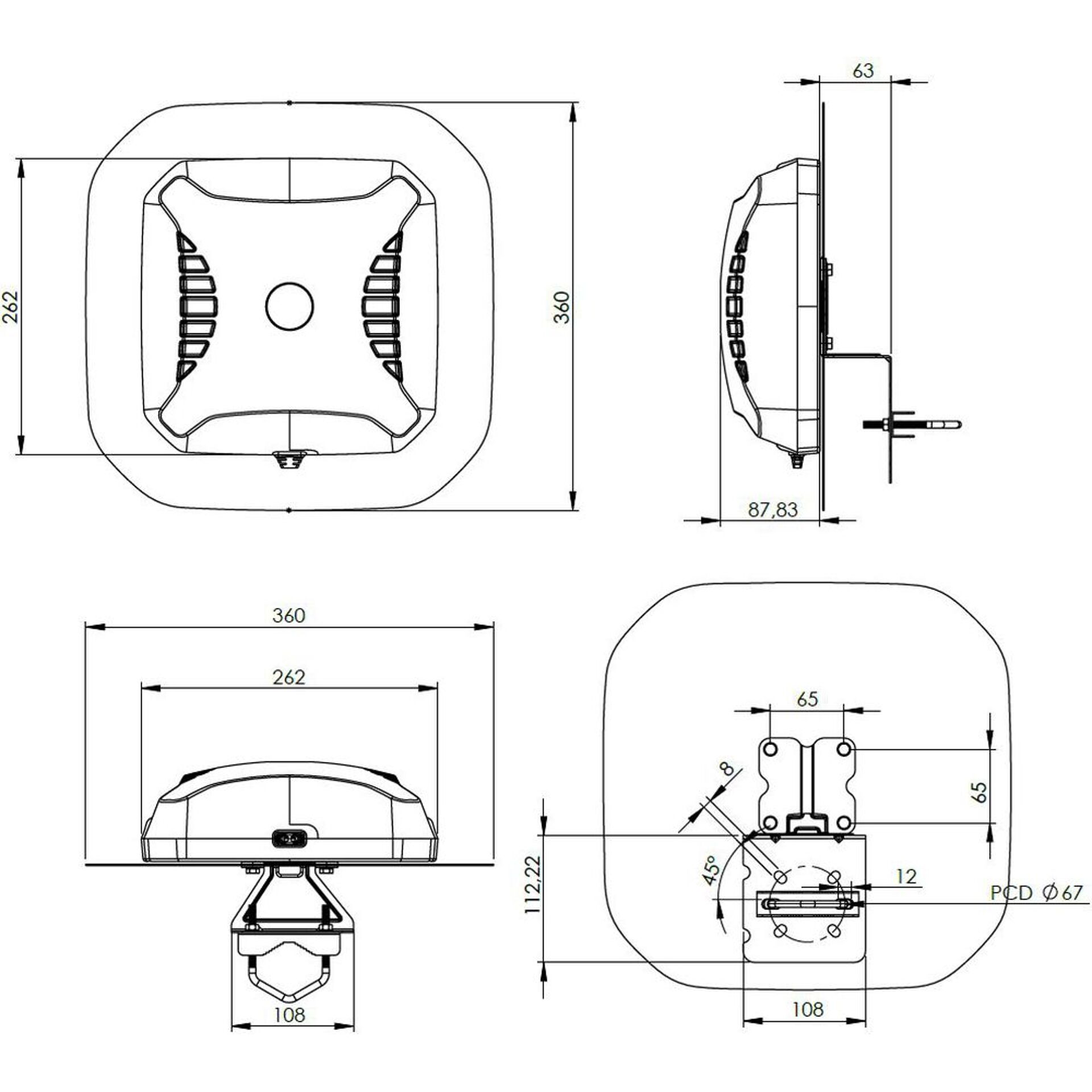- Ist mit einer Mast- und Wandmontagehalterung ausgestattet