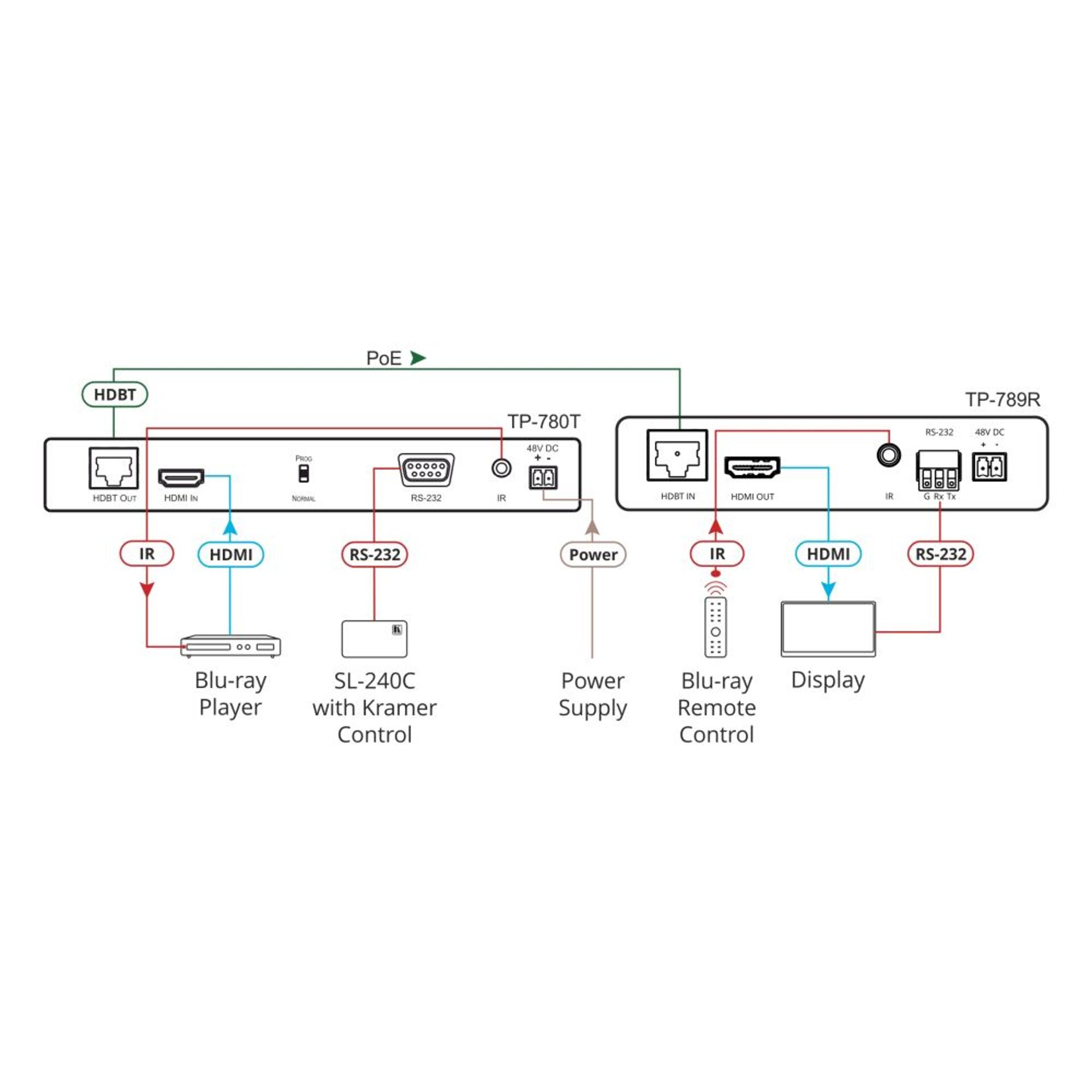 TP-789R – 4K60 HDMI über HDBaseT Receiver von Kramer mit PoE und einer Reichweite von bis zu 40 m (4K60) oder 70 m (1080p)