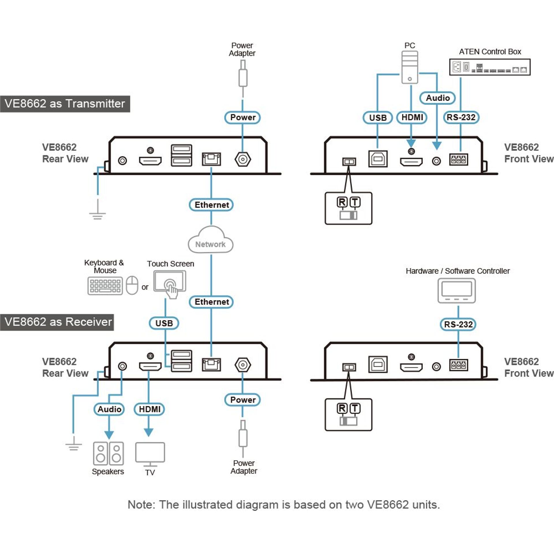 VE8662 – True 4K HDMI über IP Transceiver von Aten mit H.265 Videokomprimierung und PoE Stromversorgung