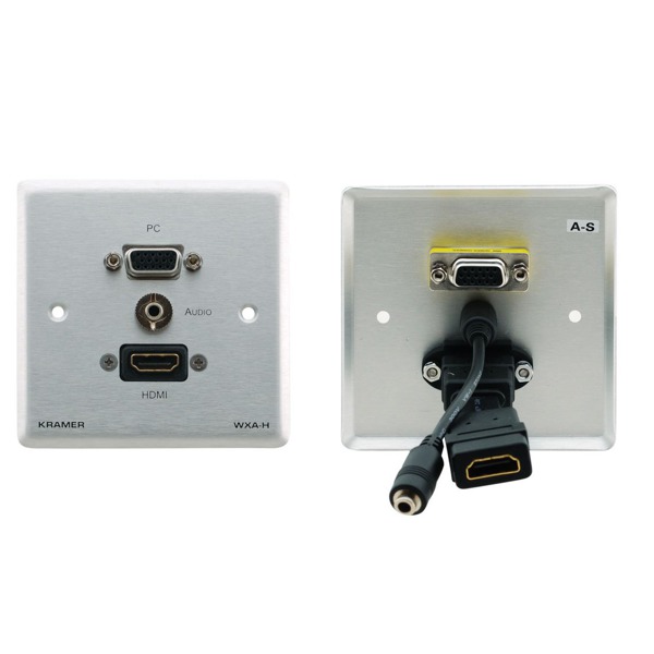WXA-H von Kramer Electronics ist eine Wand-Einbauplatte mit 15-Pin HD VGA Anschluss, HDMI und 3.5mm Audio Buchsen mit EDID PassThru Funktion.