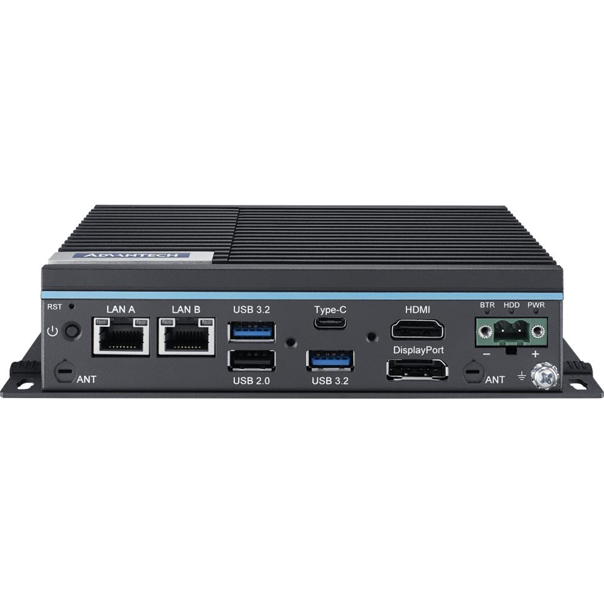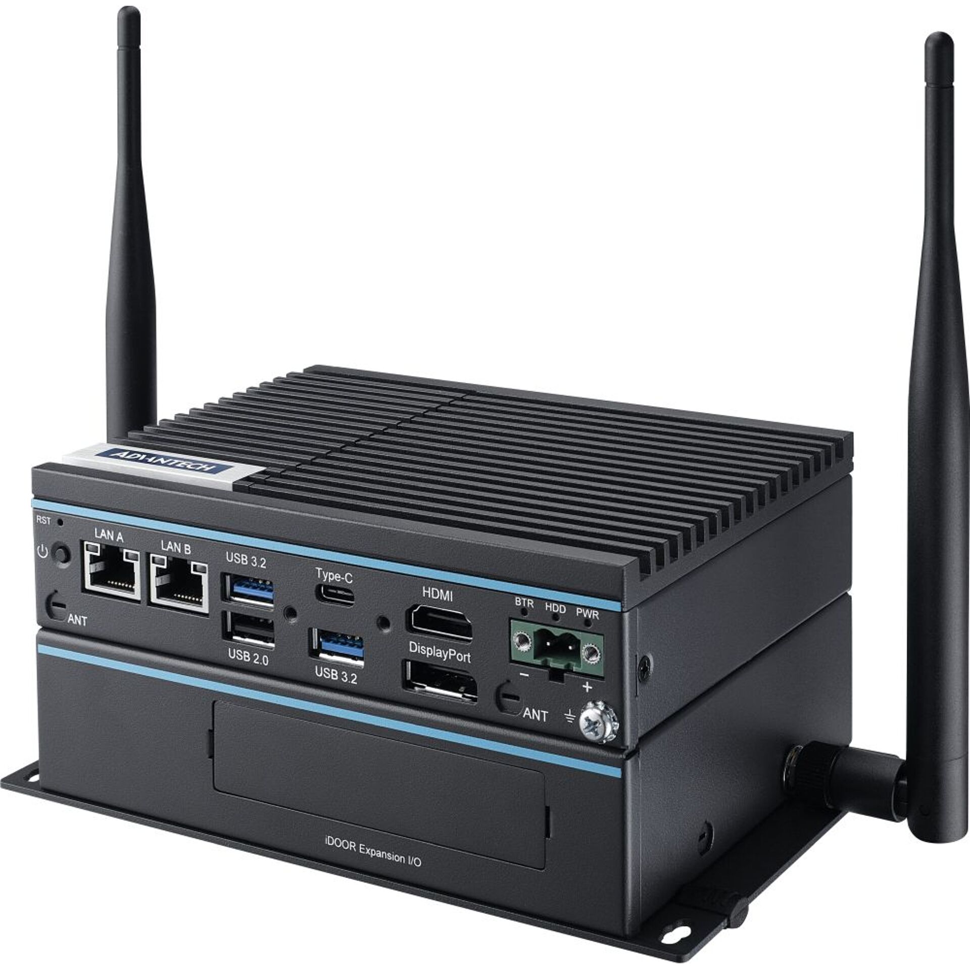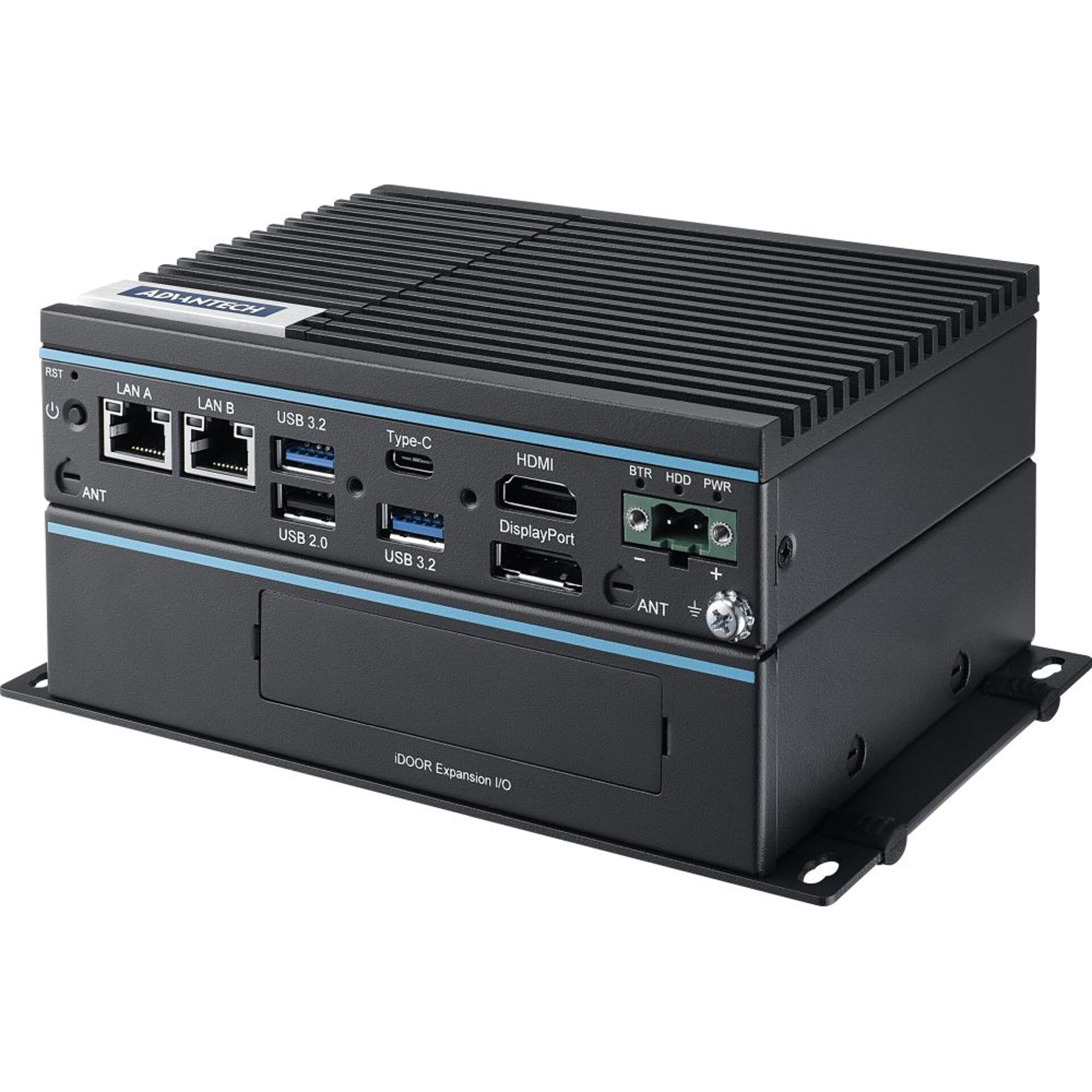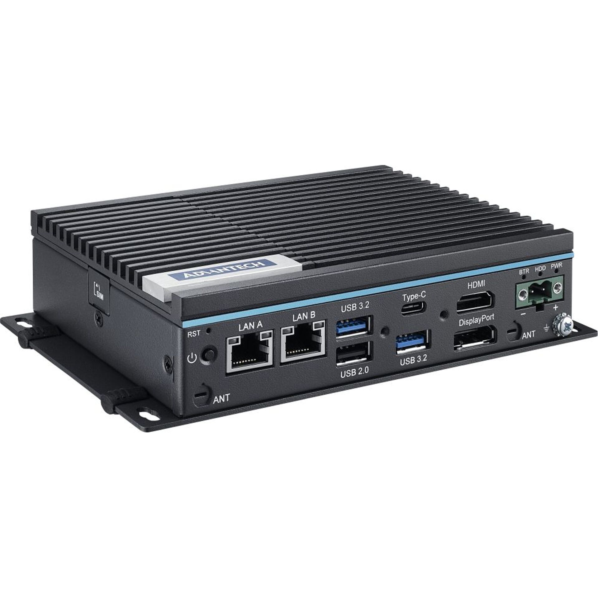 Der UNO-2372 V3 ist ein kompakter Industrie PC der UNO-2000 Serie, der mit einem lüfterlosen Gehäuse ausgestattet ist und von einem internen Intel Quad Core N250 Prozessor profitiert. Er verfügt zudem über einen DDR5 SODIMM Steckplatz mit bis zu 16GB RAM Speicher und bietet von 2x Videoanschlüsse (1x HDMI und 1x DisplayPort 1.4a), die hohe Auflösungen unterstützen. Dieser Industrie PC hat außerdem noch 2x LAN Anschlüsse mit Datenraten bis 2.5 Gbps, 3x USB-A Ports und 2x serielle RS-232/422/485 COM Schnittstellen, um mit verschiedenen Geräten verbunden werden zu können. Zusätzlich dazu ist er noch mit einem USB-C Anschluss ausgestattet, der einen DP1.4 Alt Modus für das Übertragen von Videosignalen bietet. Auf der Seite befindet sich noch ein Steckplatz für eine Nano SIM-Karte (4FF), die nur nützlich ist, wenn das optionale iDoor Erweiterungsmodul (UNO-2372V3-EKA) montiert ist. Intern hat der UNO-2372 V3 noch einen 1x M.2 M-Key, einen 1x M.2 B-Key und einen M.2 E-Key Slot, die genutzt werden können, um drahtlose IoT Edge Datenübertragungen zu erleichtern.