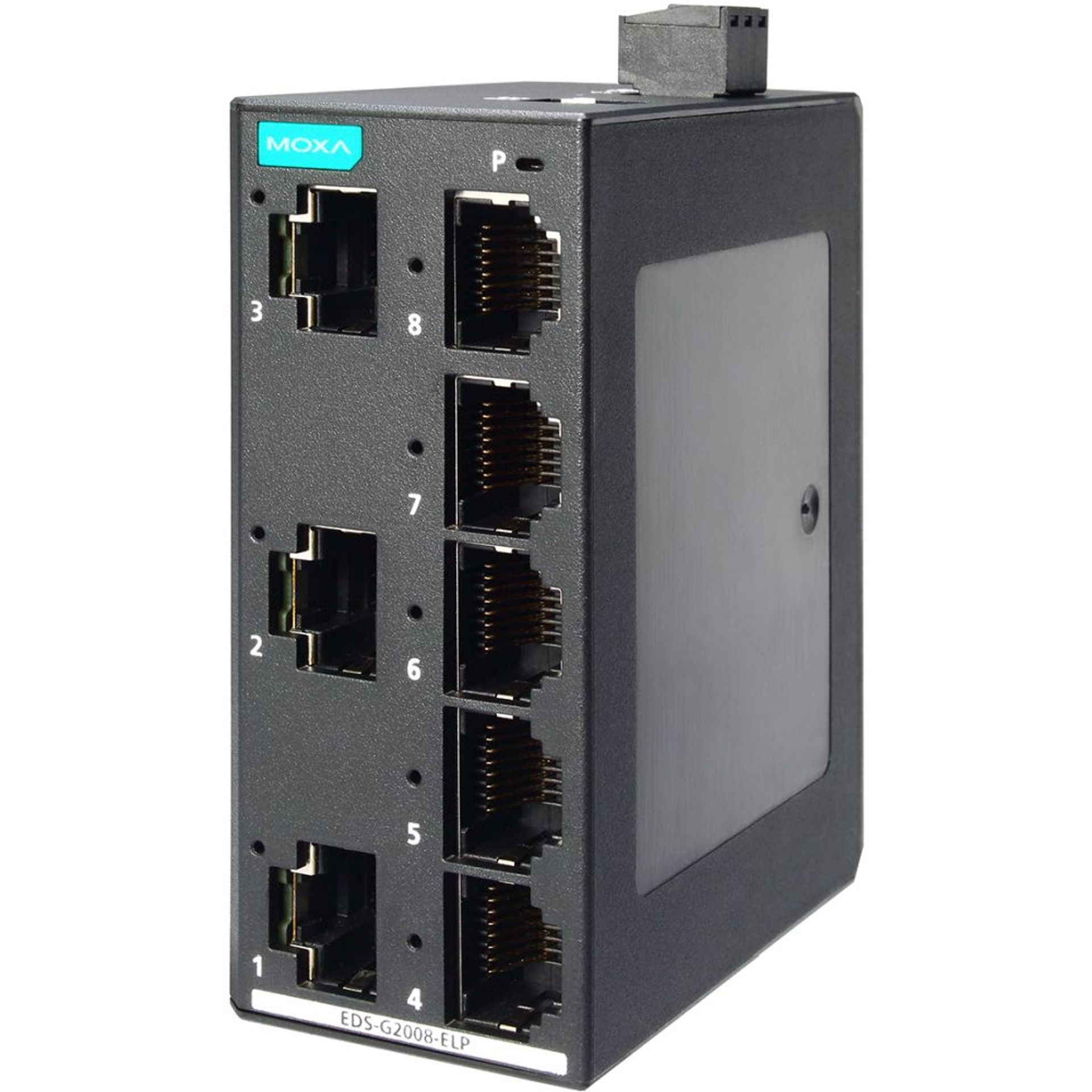 EDS-G2008-ELP – Unmanaged Ethernet Switch von Moxa mit 8x 10/100/1000 Mbps RJ45 Ports und einem kompakten IP40-konformen Plastikgehäuse