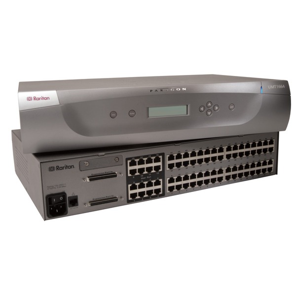 P2-UMT1664M von Raritan ist ein Paragon II Secure Matrix KVM-Switch über CAT5 für 16 Benutzer auf 64 Serverports für Distanzen bis zu 300m. Mit P2-UMT1664S Stacking-Einheit auf bis zu 128 Ports erweiterbar.