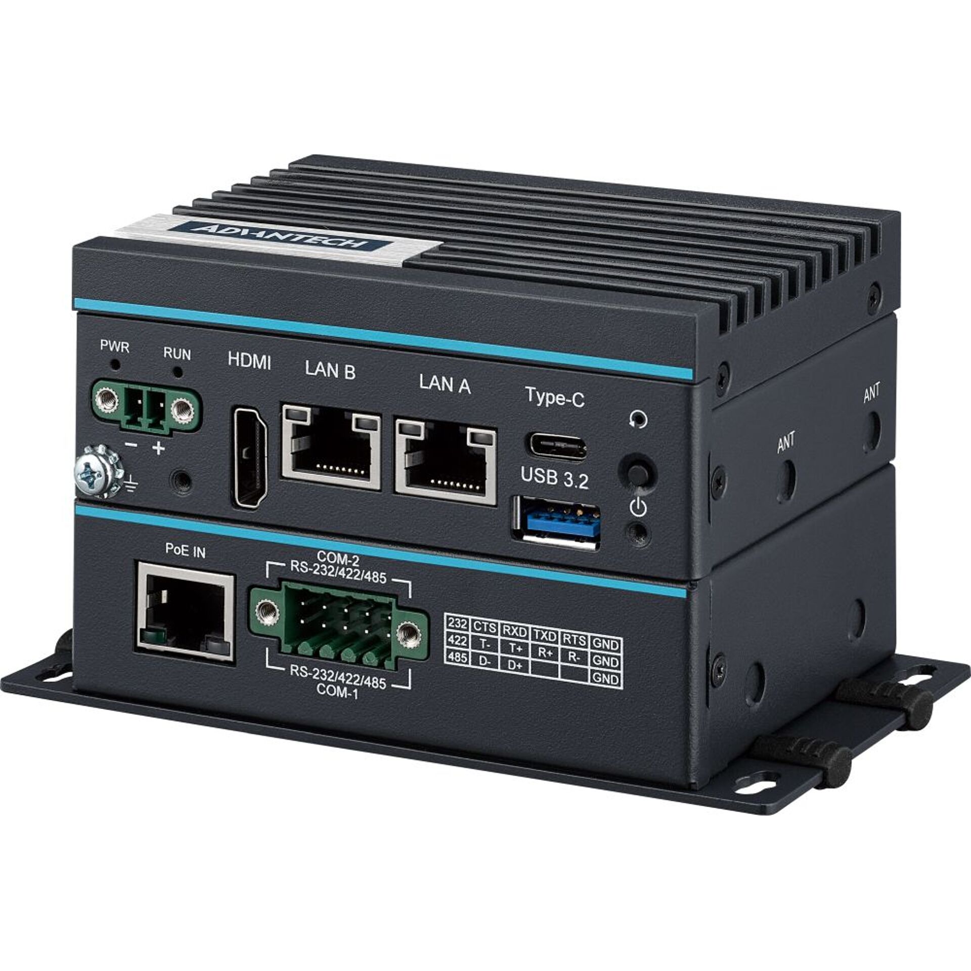 Der UNO-2271G V3 ist ein industrielles IoT Edge Gateway mit einem integrierten Intel Atom Dual-Core x7211RE Prozessor, das ebenfalls ein kompaktes und lüfterloses Design mit hoher Stabilität bietet. Es verfügt außerdem über zwei 2.5 Gbps LAN Anschlüsse, einen USB-C Port, einen USB 3.2 Anschluss, eine HDMI Schnittstelle und einen 2-poligen Klemmblock, der als Stromeingang genutzt wird. Der USB-C Anschluss unterstützt sowohl USB als auch DisplayPort Signale und der HDMI Port Auflösungen bis 1920 x 1080 bei 60 Hz. Dieses IoT Gateway ist auch mit optionale Stack Modulen kompatible, die PoE Anschlüsse, COM Ports, M.2 Slots und iDoor Steckplätze bieten. Der UNO-2271G V3 verfügt intern noch über einen TPM 2.0 Chip, der die Sicherheit der Hardware verbessert.