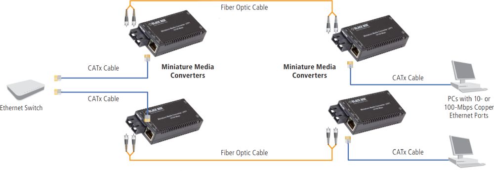 LHC014A-R4 – Kompakter Ethernet zu Fiber Medienkonverter von Black Box mit einem 10/100 Mbit/s RJ45 und einem Multi-Mode SC Anschluss