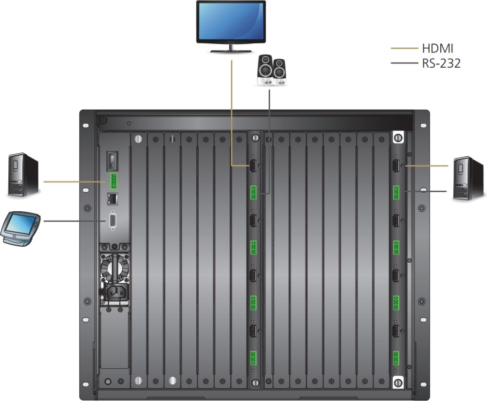 - Ist mit den modularen VM Matrix Switches (VM1600A, VM3200, VM3250) von ATEN kompatibel