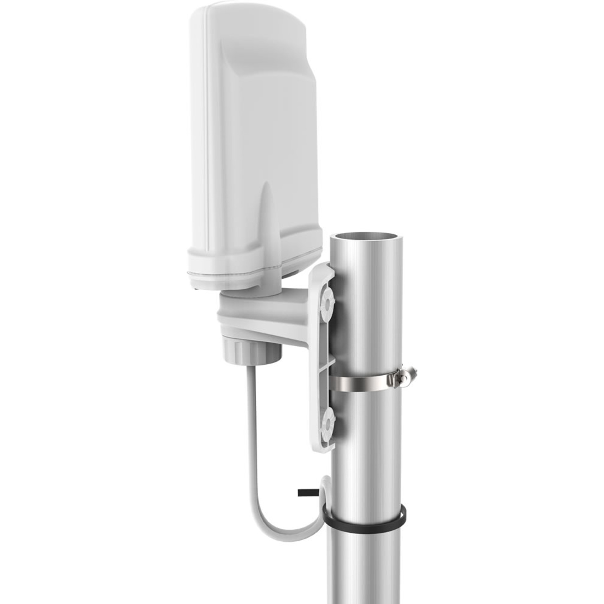 Das wetterfeste Gehäuse lässt sich an Fenster, Wand oder Mast montieren. Die Antenne wird inkl. 2 x 5 m verlustarmen Antennenkabel und SMA-Stecker geliefert.