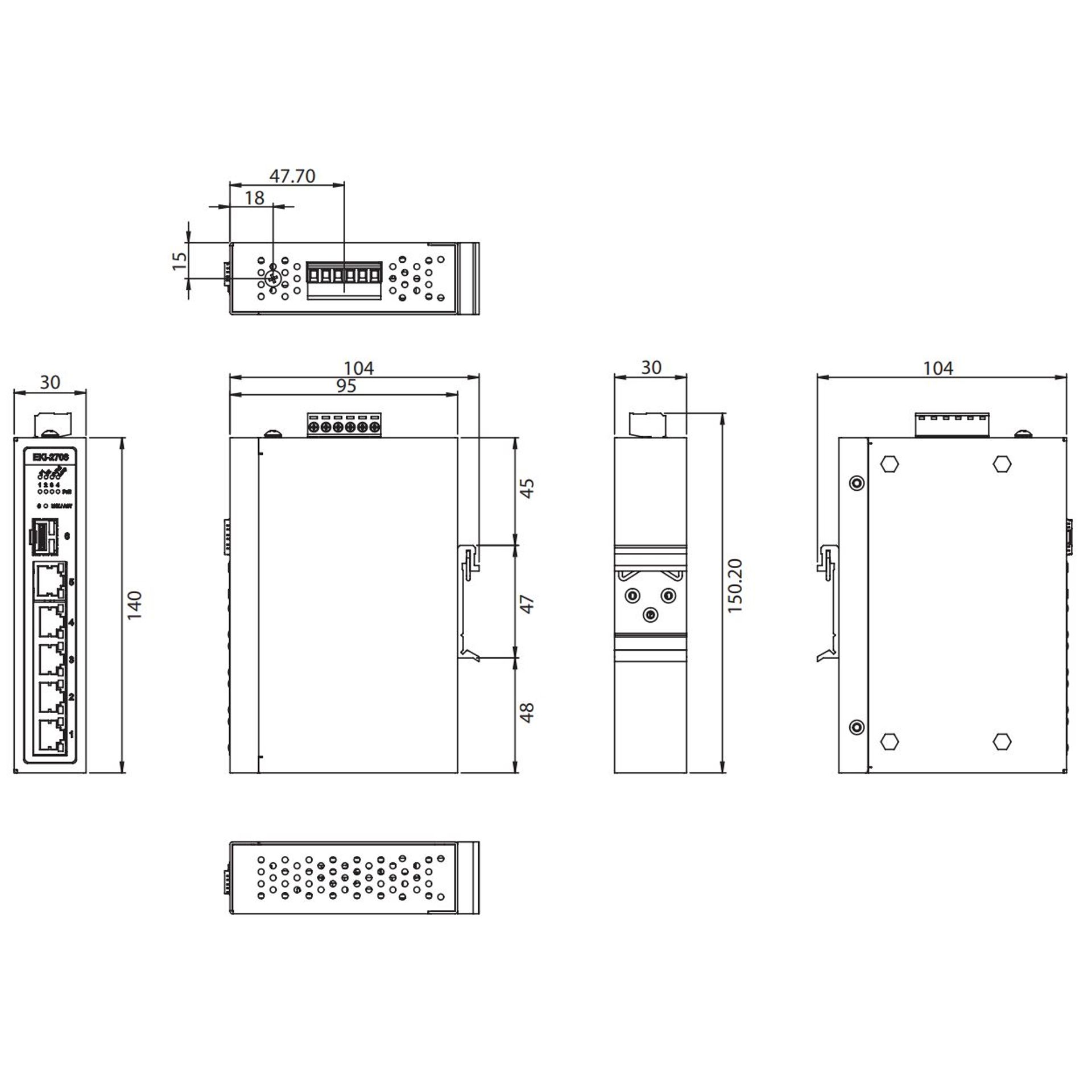 Der EKI-2706G-1GFPI ist ein industrieller Unmanaged Gigabit PoE Switch, der 24 bis 48VDC redundanten Spannungseingang unterstützt und mit einem doppelten Schutzmechanismus geschützt ist, Überlaststromsicherung und Polarity Reverse Protect. Außerdem unterstützt er bis zu 4 IEEE 802.3af/at PoE/PoE+ Anschlüsse. Jeder Anschluss dieses Switches verfügt über 2 LED Lichter, die den Kollisionsstatus und die Übertragungsgeschwindigkeit des Verbindungsstatus anzeigen.
