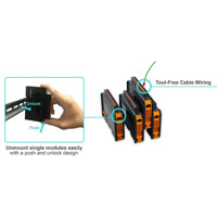 Die ioThinx 4510 Geräte haben einzigartiges mechanisches Design das den Zeitaufwand für die Montage und Demontage verringert. Die Befestigung dieses Adapters benötigt keinerlei Werkzeug für die Installation der Hardware, inklusive der Befestigung des Geräts auf DIN-Schiene. Außerdem werden keine Werkzeuge für die Montage der Verkabelung für Kommunikation und I/O Signalerfassung, oder für das Entfernen des Adapters von Din Schienen benötigt.