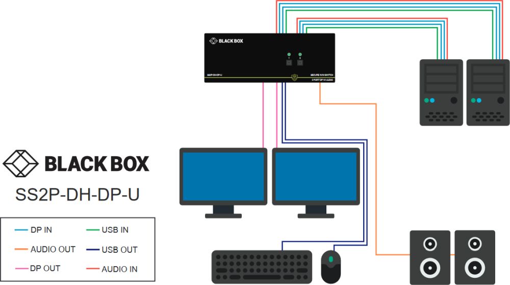 SS2P-DH-DP-U – 2-Port Dual-Head DisplayPort Secure KVM Switch von Black Box mit NIAP-Schutzprofil Version 3.0 Zertifizierung