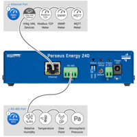 Der Perseus Energy 240 ist die einfachste LAN Monitoring Lösung der Perseus Serie von HW group, die nur einen RJ45 Anschluss und einen 4-poligen Klemmblock für externe RS-485 Modbus/RTU Sensoren hat. Sie unterstützt maximal 1000 Werte von bis zu 100 unterschiedlichen Messgeräten und kann Alarmierungen per SNMP Trap oder E-Mail senden, wenn einer der definierten Limits überschritten wird. Diese LAN Monitoring Lösung ist außerdem mit dem SensDesk.at Online Portal kompatibel, das die Überwachung und Kontrolle der verbundenen Geräte erleichtert. Für das Verbessern der Sicherheit bietet sie zudem RADIUS – IEEE 802.1x Authentifizierung und Benutzerkonten, die unbefugte Zugriffe verhindern. Der Perseus Energy 240 eignet sich auch für die Verwendung als Modbus/RTU zu Modbus/TCP Gateway und kann, falls nötig, ebenfalls als Modbus/RTU zu MQTT oder SNMP Konverter genutzt werden. Die Stromversorgung erfolgt entweder über ein externes 12V Netzteil oder den 2-poligen 9-30 VDC Klemmblock.